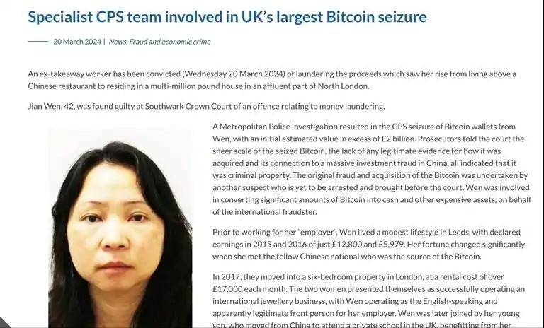 不久后,警方查明了她的比特币交易记录,最终找到了她藏匿的6.1万枚比特币,总价值达到14亿英镑。2024年4月,钱志敏终于回到伦敦,被当场逮捕。